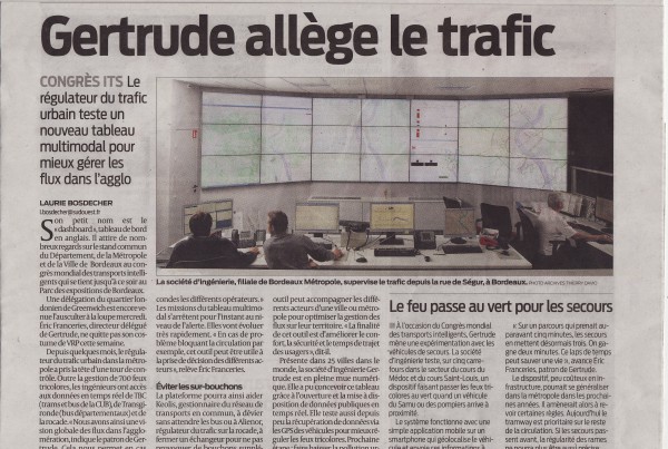 Congrès mondial ITS Bordeaux, Gertrude à la « Une » du journal Sud Ouest