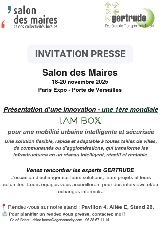 Au Salon des Maires 2025, GERTRUDE présentera des innovations uniques en France, destinées aux petites et moyennes villes, ses services études et simulation, ainsi que différentes solutions partenaires orientées IA, Lidar, Digital twins, IOT.